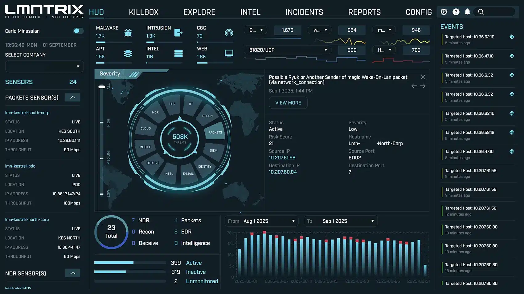 Correlate packet data with NDR, EDR, SIEM, and Deception modules in the LMNTRIX XDR console.