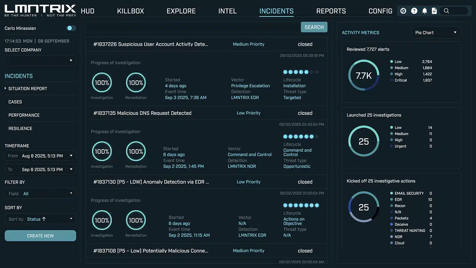 Most MDR vendors talk about what they do. LMNTRIX shows you, live. Our MDR dashboard delivers real-time visibility into every investigation and response action so you know exactly how threats are being handled.