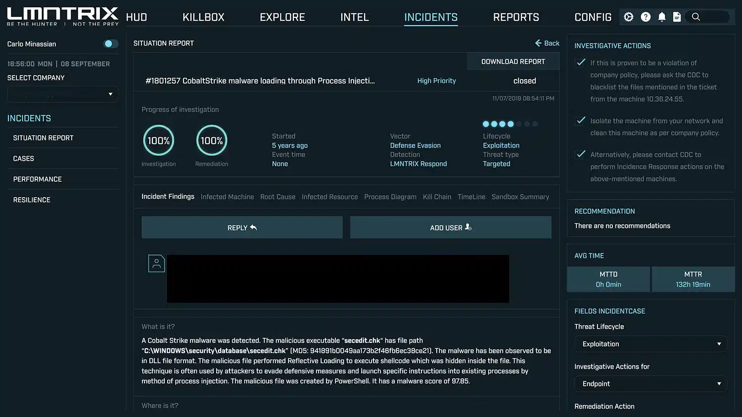 We don’t just say we’re fast—you’ll see the numbers. From reduced dwell time to faster containment, your dashboard shows the measurable impact of LMNTRIX MDR on your risk exposure.